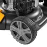 - Быстрая очистка — удалять грязь и остатки травы из внутренних лопастей нетрудно, т.к. косилка оборудована штуцером для подключения шланга.