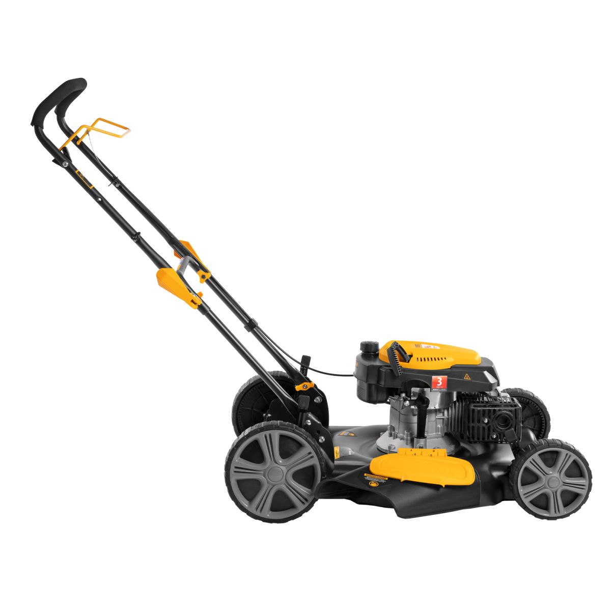 Газонокосилка в сборе с ножом и колесами - 1 штДефлектор бокового выброса - 1 штНижняя часть рукоятки - 1 штВерхняя часть рукоятки - 1 штКомплект крепежа - 1 штКлюч свечной - 1 штФиксатор троса - 1 штЗаглушка для мульчирования - 1 штРуководство по эксплуатации с гарантийным талоном - 1 шт