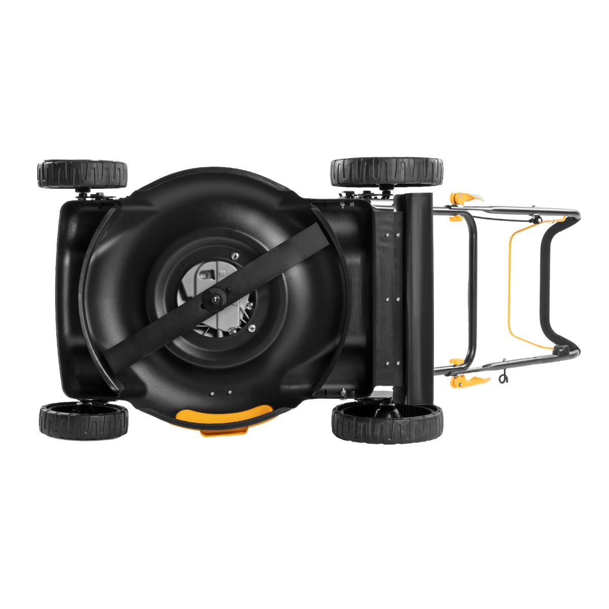 - Удобный выбор режима работы — за счет отсутствия травосборника переключаться между мульчированием и боковым выбросом проще, т.к. не нужно устанавливать заглушки.