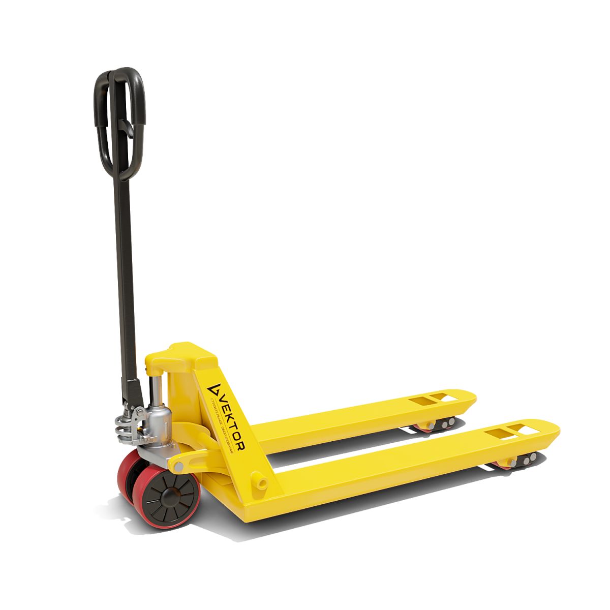 Гидравлическая тележка (рохля) Vektor 20/115 PU подходит для перемещения грузов на поддонах массой до 2 тонн. Повсеместно используется на складах, на производствах, на фабриках, в магазинах. Устройство гидравлической тележки Vektor 20/115 PU Рохля представляет собой металлическое основание с двумя вилами и ручкой управления. Общая ширина вил — 55 см, а длина — 115 см, поэтому вы сможете перемещать грузы, установленные на большинство видов паллет. Гидравлический насос, встроенный между основанием и ручкой, отвечает за плавный подъем и спуск груза. На верхней части ручки есть рычаг, с которым тележка переключается в режимы подъема, спуска и движения. Ведущие колеса тележки изготовлены из полиуретана, они подходят для эксплуатации на ровной поверхности. В комплекте с рохлями поставляется подробная инструкция на русском языке. Опытные менеджеры СибТоргСервис помогут с подбором гидравлической тележки под ваши задачи, ответят на любые вопросы по оборудованию, процессу покупки, доставке, установке и пусконаладке, сервисному обслуживанию.