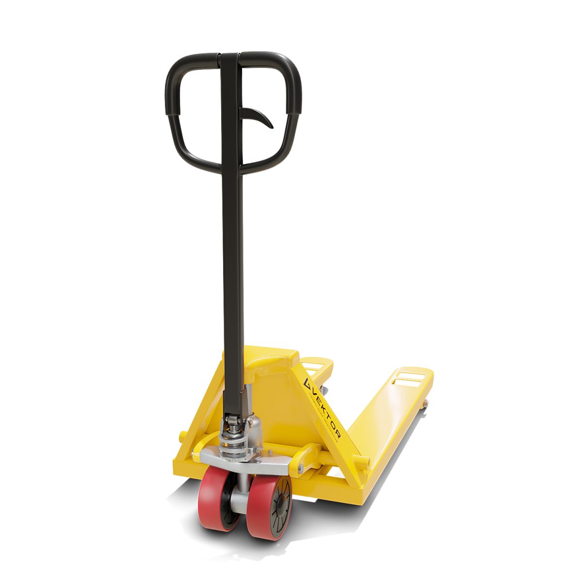 Гидравлическая тележка (рохля) Vektor 30/115 PU подходит для перемещения грузов на поддонах массой до 3 тонн. Повсеместно используется на складах, на производствах, на фабриках, в магазинах. Устройство гидравлической тележки Vektor 30/115 PU Рохля представляет собой металлическое основание с двумя вилами и ручкой управления. Общая ширина вил — 55 см, а длина — 115 см, поэтому вы сможете перемещать грузы, установленные на большинство видов паллет. Гидравлический насос, встроенный между основанием и ручкой, отвечает за плавный подъем и спуск груза. На верхней части ручки есть рычаг, с которым тележка переключается в режимы подъема, спуска и движения. Ведущие колеса тележки изготовлены из полиуретана, они подходят для эксплуатации на ровной поверхности. В комплекте с рохлями поставляется подробная инструкция на русском языке. Опытные менеджеры СибТоргСервис помогут с подбором гидравлической тележки под ваши задачи, ответят на любые вопросы по оборудованию, процессу покупки, доставке, установке и пусконаладке, сервисному обслуживанию.