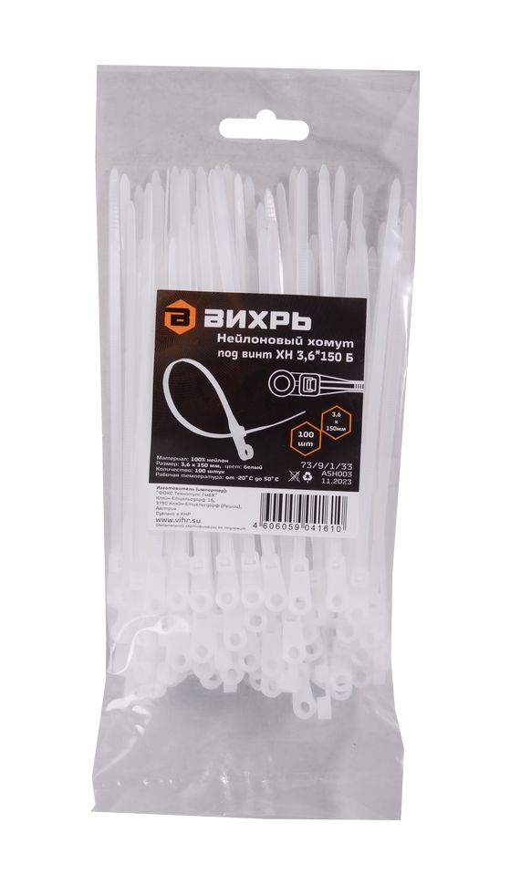 Хомут нейлоновый под винт Вихрь 3,6х150 Б (100 шт)