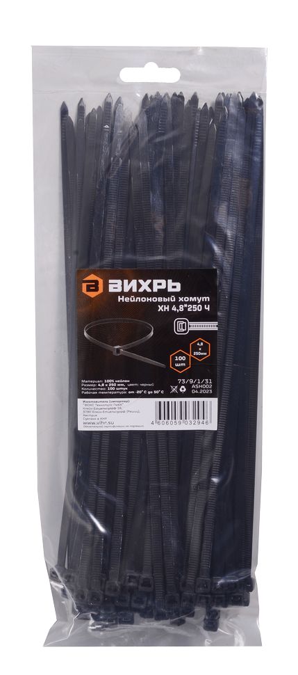 Хомуты нейлоновые (стяжки) черные 100 шт. Вихрь 4,8*250 Ч