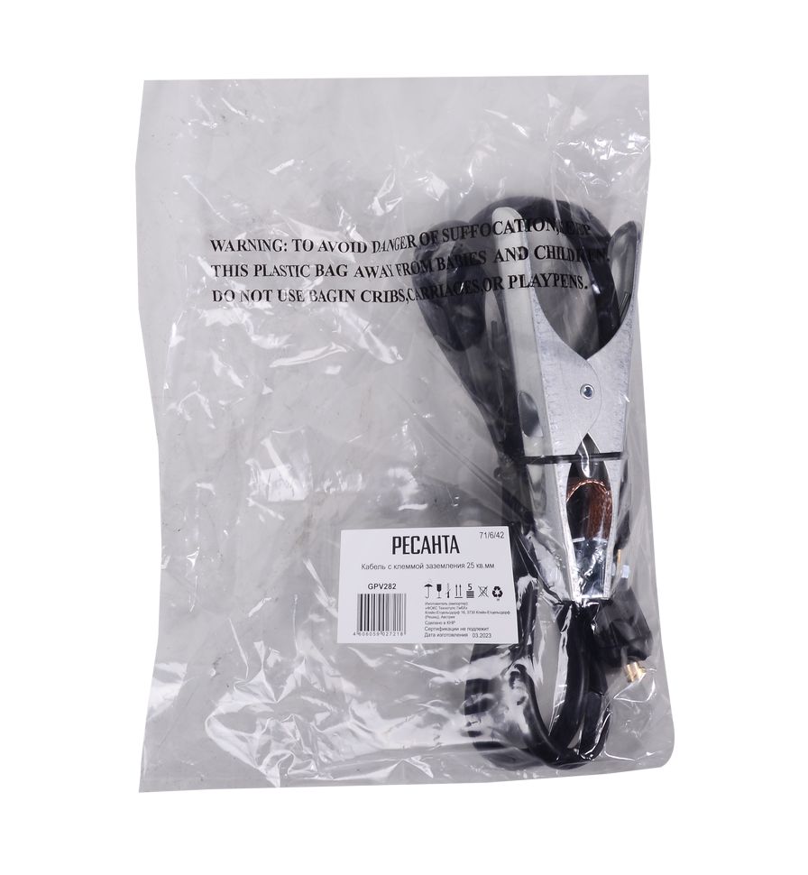 Кабель с клеммой заземления Ресанта 25 кв.мм