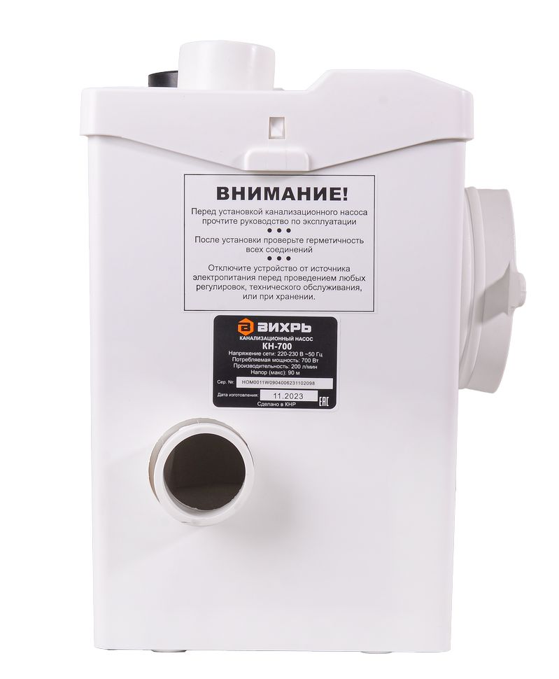 700 Вт, 200 л/мин, макс. напор по вертикали – 9 м, по горизонтали – 90 м, 2 входа