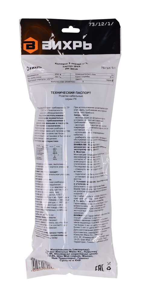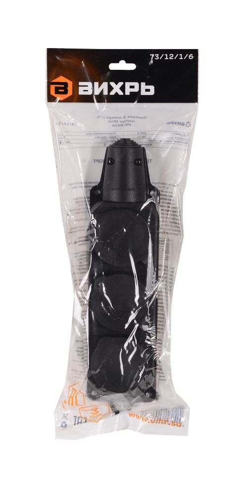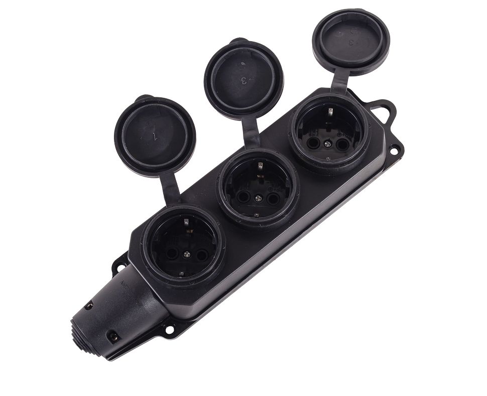 Колодка 3 гнезда с/з, каучук IP44 16А Вихрь