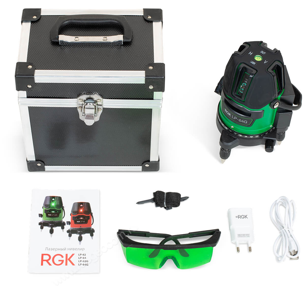 Комплект лазерного уровня RGK LP-64G и рулетка AMO R303