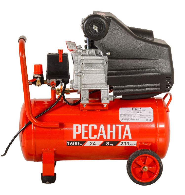 Компрессор Ресанта КП-24/230М используется для нагнетания сжатого воздуха в различное пневмооборудование в ходе строительно-ремонтных работ. Максимальная производительность компрессора 230 литров в минуту, объем ресивера 24 литра.