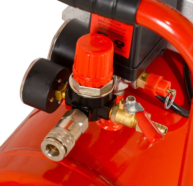 - Манометр позволяет контролировать давление в ресивере и на выход.