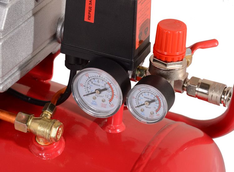 - Манометр позволяет контролировать давление в ресивере и на выход.