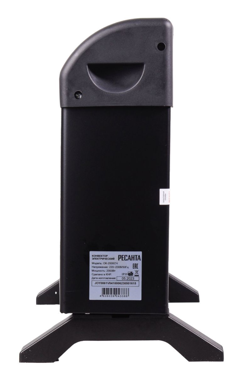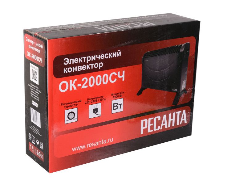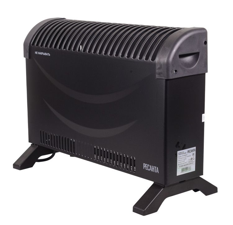 Конвектор РЕСАНТА ОК2000-СЧ – электрический отопительный прибор для обогрева помещений площадью до 20-30 м². Принцип работы устройства базируется на естественной конвекции, чем и обусловлено его название. Снизу прибора расположен нагревательный элемент. Воздух нагревается снизу и постепенно поднимается вверх, а затем проходит через жалюзи и распределяется во все стороны.