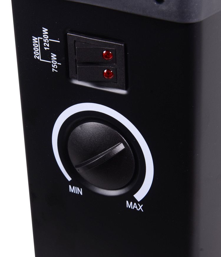 Потребляемая мощность электроконвектора зависит от выбранного режима и может составлять 750/1250/2000 Вт. Переключение между режимами осуществляется при помощи кнопок. Встроенный терморегулятор позволяет легко поддерживать заданную температуру в помещении. Конвектор данной модели можно установить на пол в удобном месте, а также предусмотрены крепления для монтажа на стену.