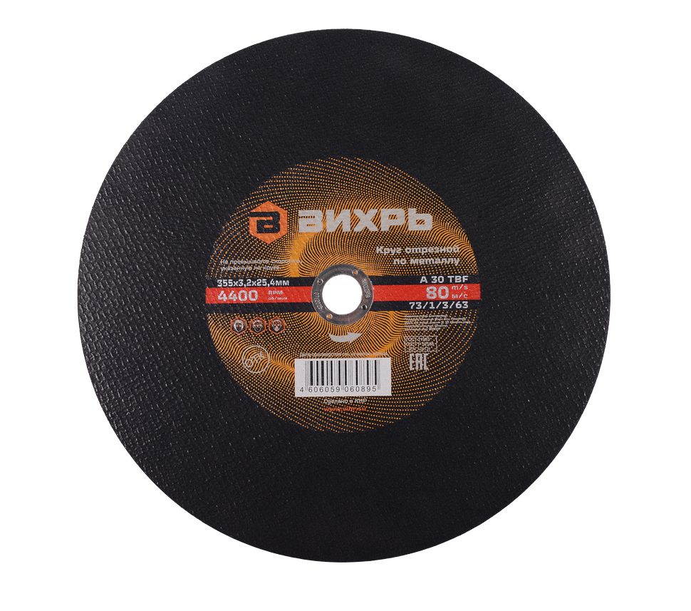 Круг отрезной по металлу 355х3,2х25,4 мм Вихрь