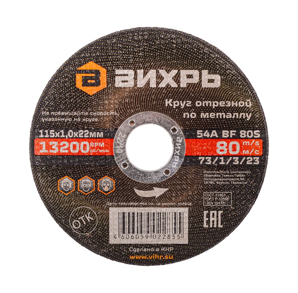 Круг отрезной по металлу Вихрь 115х1,0х22 мм