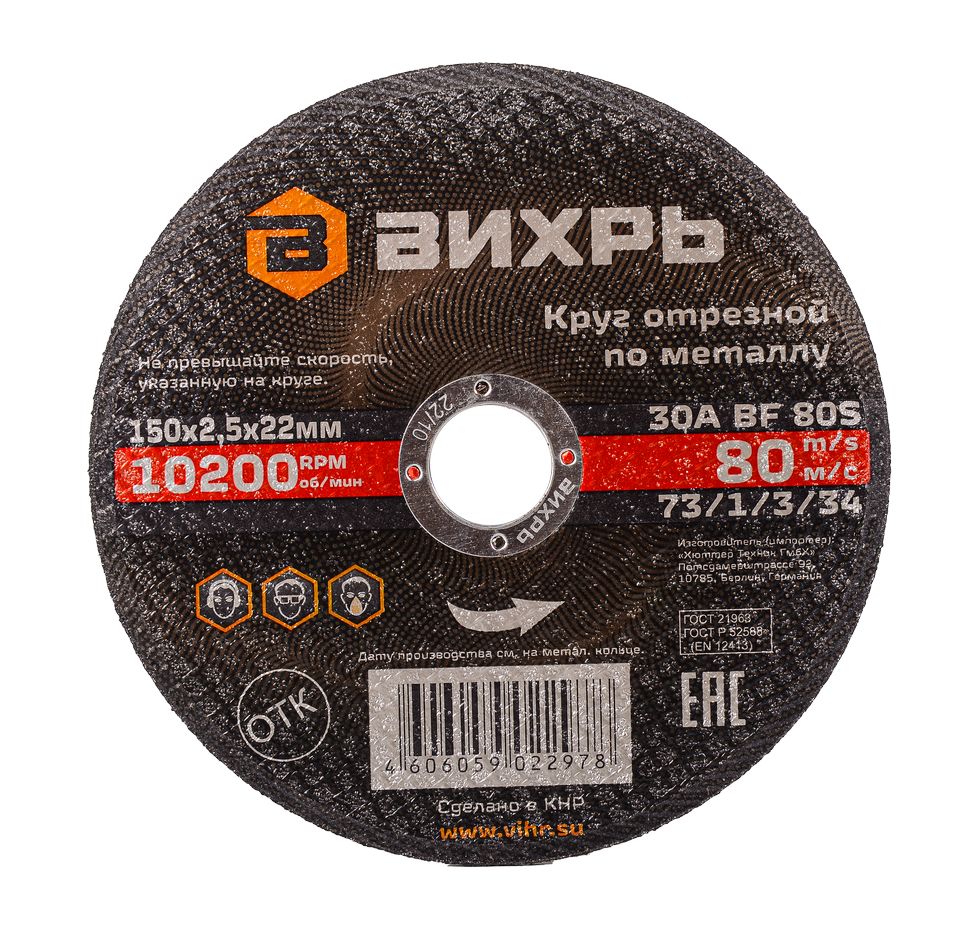 Круг отрезной по металлу Вихрь 150х2,5х22 мм