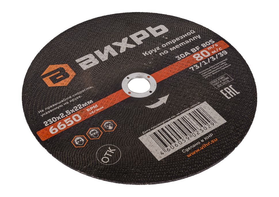 Круг отрезной по металлу Вихрь 230х2,5х22 мм