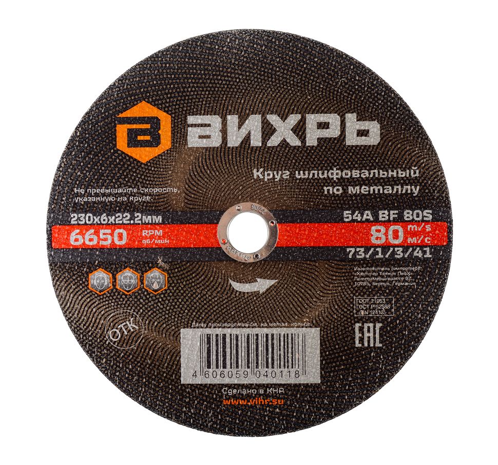 Круг шлифовальный по металлу Вихрь 230х6х22,2 мм