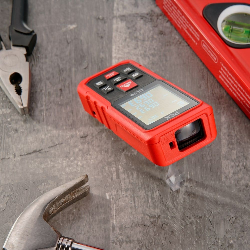 Лазерный дальномер RGK DL70 измеряет расстояния до 70 метров c точностью ±3 мм и оснащен угломером. Ключевая особенность прибора - опция "помощник маляра", которая поможет быстро вычислить сумму площадей стен помещения. Таким образом вы сможете точно рассчитать необходимый объем краски, штукатурки и других материалов.