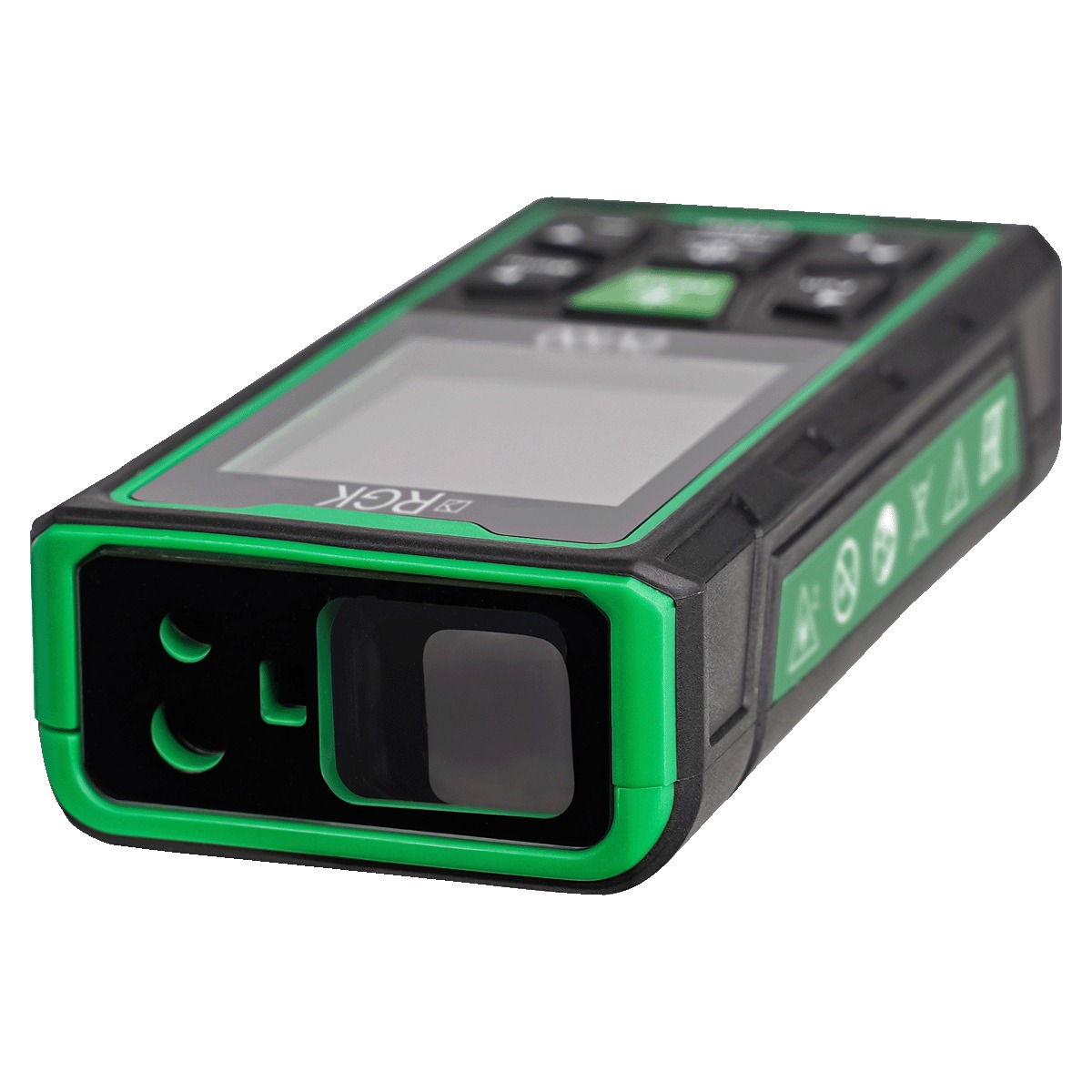 Лазерный дальномер с видоискателем RGK D100 действительно удобен и интуитивно прост в управлении: благодаря новой эргономичной форме корпуса прибор отлично лежит в руке, а большие прорезиненные кнопки с понятными пиктограммами обеспечивают быстрый доступ ко всем функциям устройства. На большом четырёхстрочном дисплее отображаются результаты измерения и активный режим, а встроенная подсветка помогает работать при ярком освещении. Среди других достоинств дизайна RGK D100 возможность крепления прибора на стандартный фотоштатив для проведения измерений, требующих наибольшей точности.