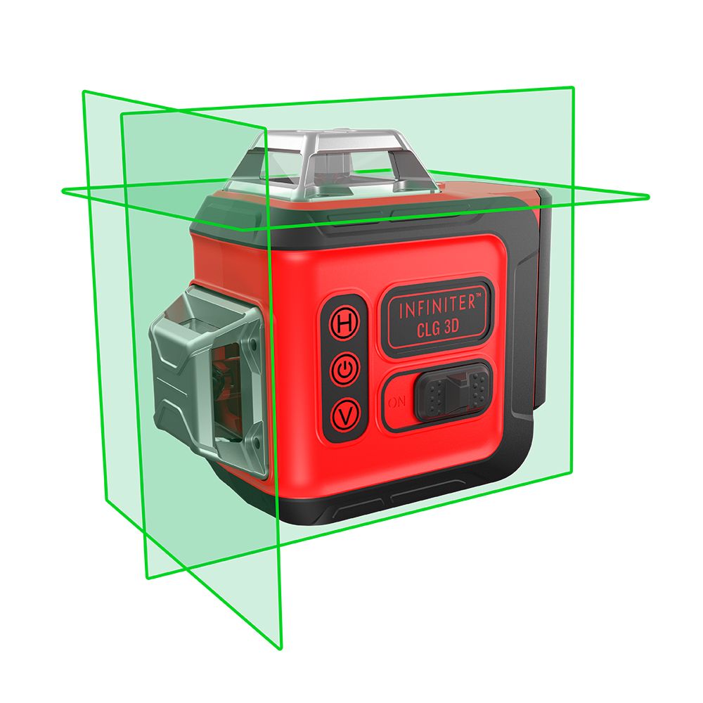 Лазерный нивелир INFINITER CLG 3D проецирует две вертикальные и одну горизонтальную плоскости с углом развертки 360°.
