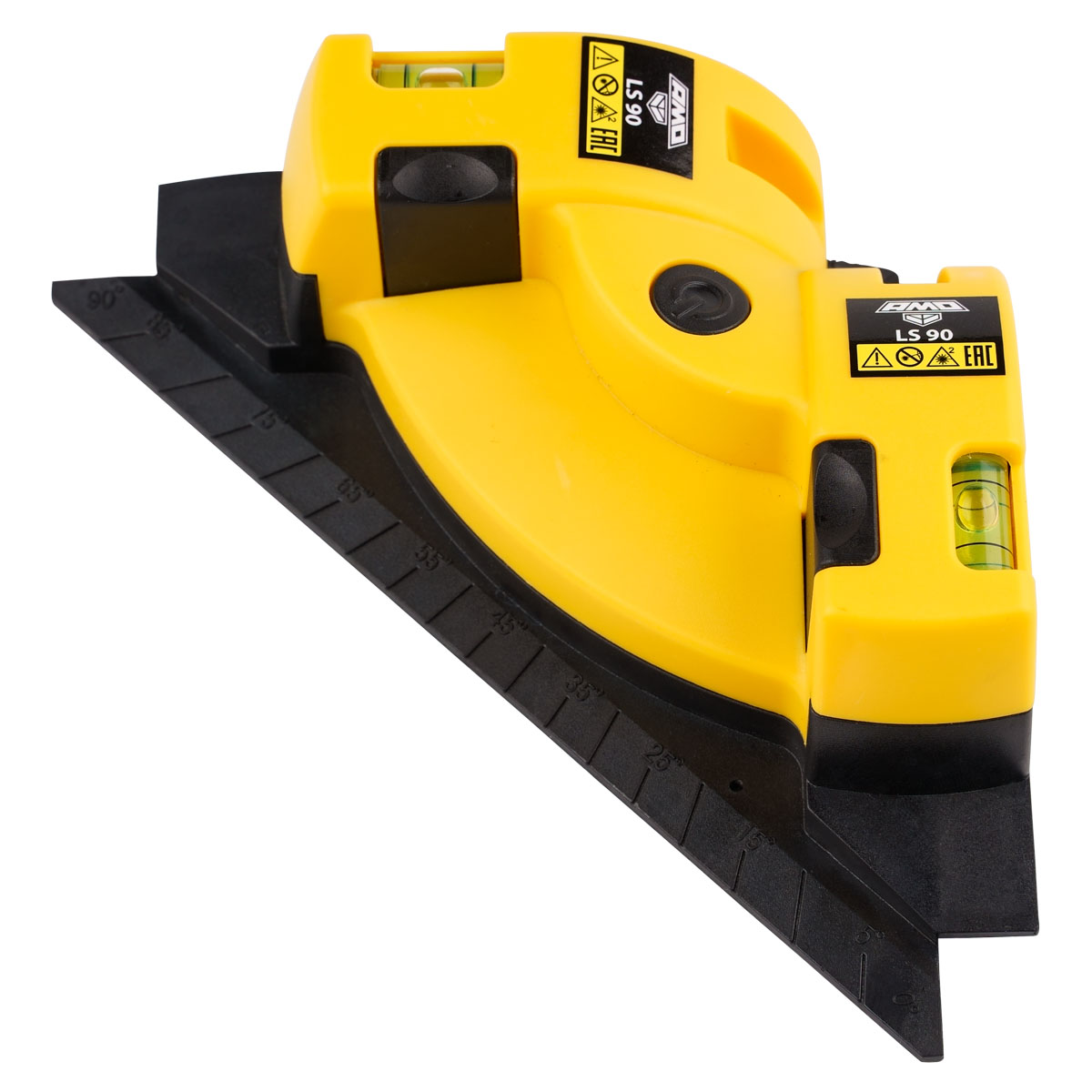 Шкала в задней части лазерного угольника для кафеля АМО LS90 помогает разметить углы от 5° до 85° и позволяет обойтись без дополнительных инструментов.