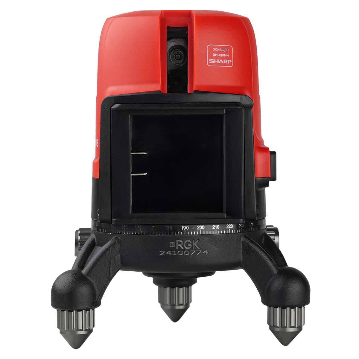 Мощный литой трегер с подъемными ножками позволяет быстро и точно установить устройство в ровное горизонтальное положение. Трегер также оснащен винтами для плавной подстройки вертикалей, что значительно упрощает процесс настройки. Лимб с разметкой на 360 градусов позволяет точно передвинуть линии на нужное расстояние.