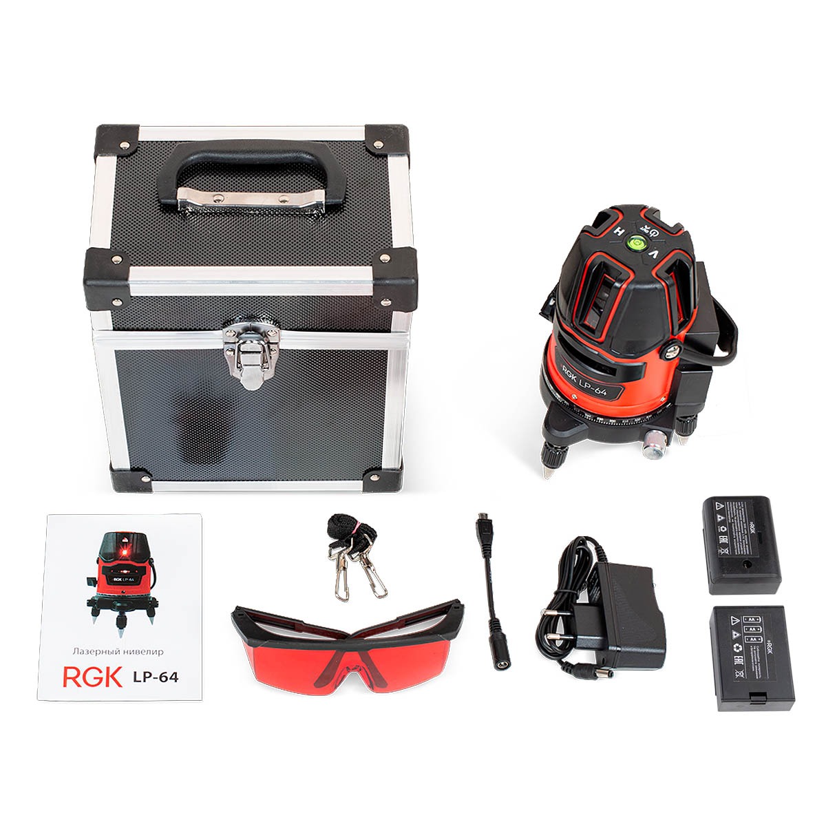 Питание прибора может осуществляться как от трёх батарей АА, так и от аккумулятора. Это обеспечит вам большую гибкость в работе: при возможности зарядки от сети лазерный уровень RGK LP-64 может работать от аккумулятора, а в отсутствие электросети вы можете использовать простые заменяемые батарейки.