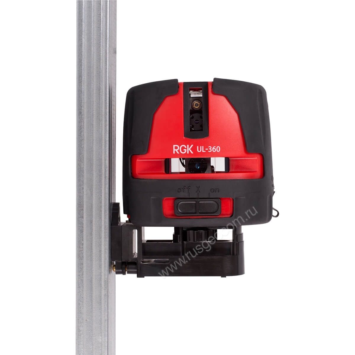 Для удобства нанесения разметки лазерный нивелир RGK UL-360 можно установить на штатив, для чего в нижней части устройства предусмотрена резьба 1/4”. Поставляемое в комплекте магнитное крепление даёт возможность закрепить нивелир на металлической поверхности на любой высоте, в углу комнаты или в другом недоступном месте. Проработанная конструкция корпуса и тщательно подобранные материалы обеспечивают надёжную защиту устройства нивелира от негативных факторов. Бесперебойное функционирование RGK UL-360 гарантировано в диапазоне от -5°C до +45°C, что позволяет работать с ним практически в любых помещениях.