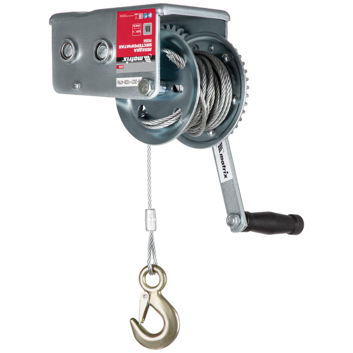Лебедка шестеренчатая, тяга 0.8 т, тросовая Matrix