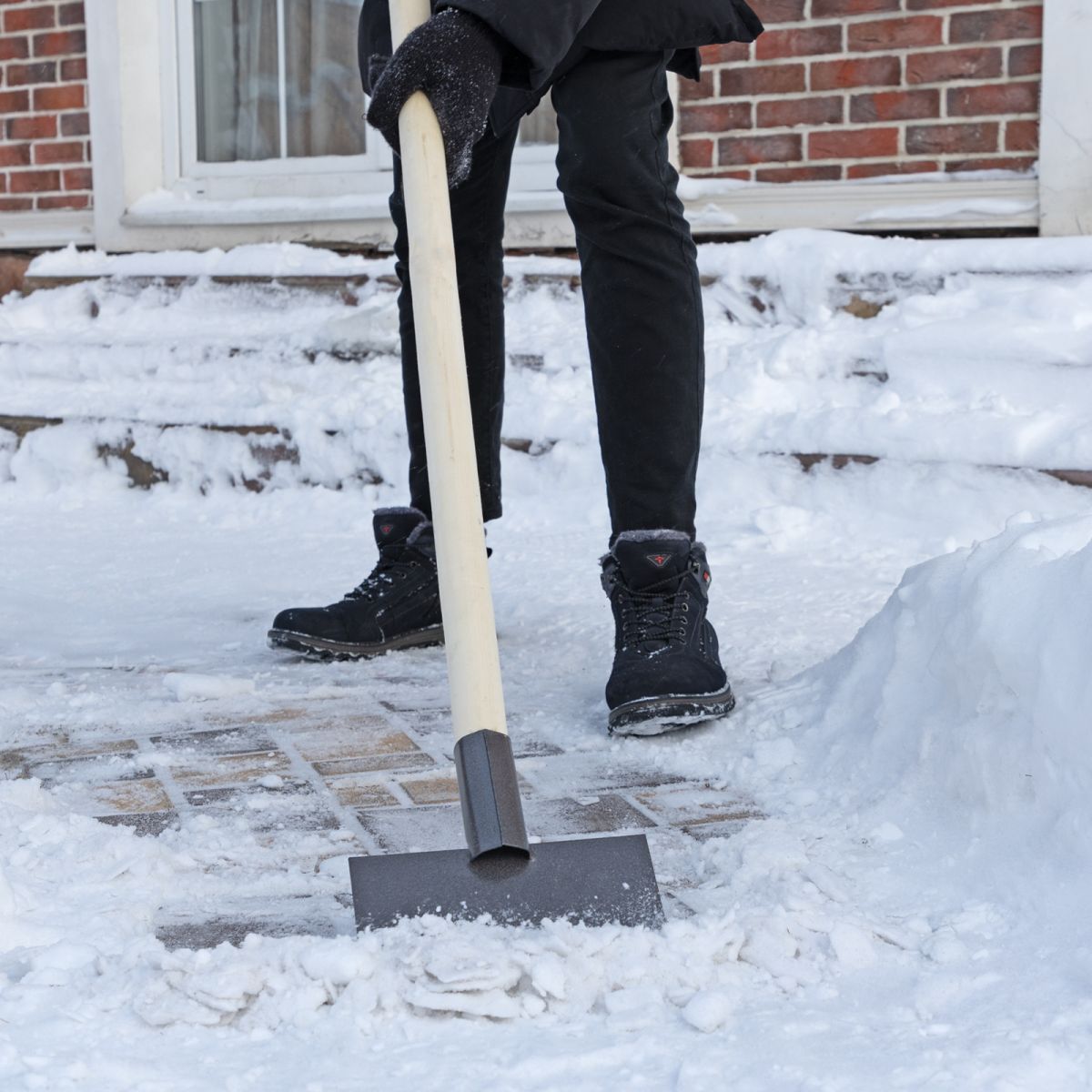 Ледоруб-скребок Сибртех 61664 шириной 200 мм и весом 1 кг, с деревянным черенком, используется для скалывания льда. С его помощью можно быстро очистить ступени, дорожки, тротуары на даче, в саду, в гараже, у дома. Ледоруб выдерживает мороз до -60 ℃.