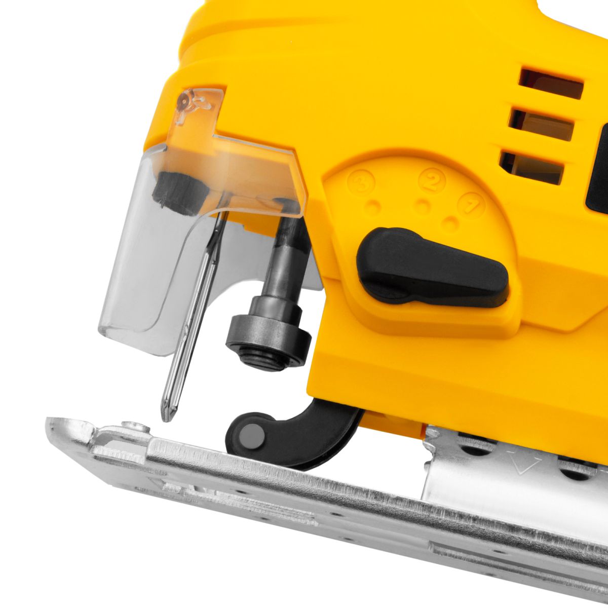 • Одинаковая эффективность при прямой и фигурной резке — усовершенствованный механизм главного движения исключает отклонение пильного полотна в сторону.