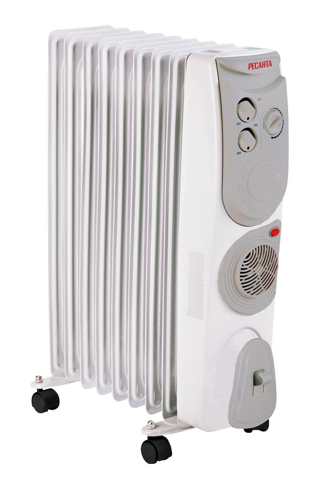 Масляный радиатор Ресанта ОМ-9АВ 2,4 кВт служит для обогрева воздуха в помещении и создания комфортной температуры в холодное время года. Устройство автоматически поддерживает заданную температуру за счет механического термостата. Модель не выжигает кислород в помещении благодаря низкой температуре корпуса. Встроенный тепловентилятор обеспечивает быстрый обогрев помещения.