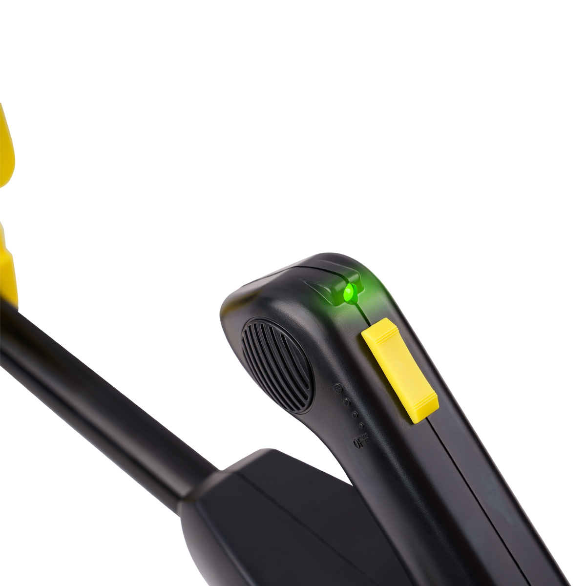 Детский металлоискатель RGK MD-6 не требует каких-либо настроек и регулировок. После включения он сразу готов к поискам. Все, что необходимо сделать перед первым использованием - настроить длину штанги под рост ребенка и зафиксировать катушку так, чтобы она была параллельна земле.