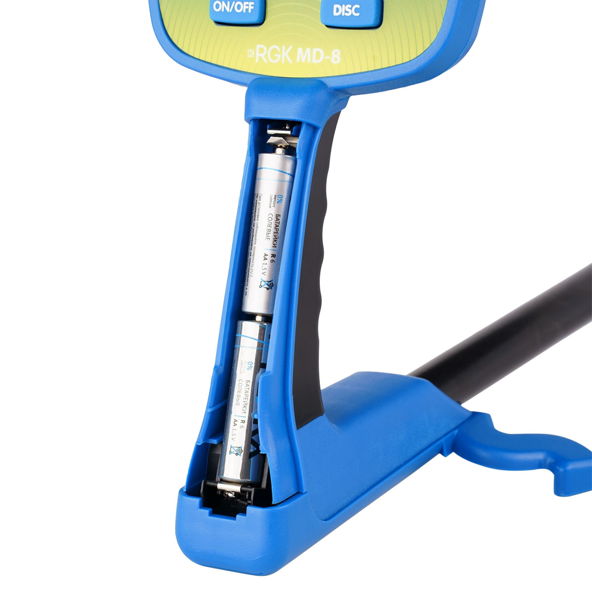 Все, что необходимо сделать перед первым использованием детского металлоискателя RGK MD-8 - настроить длину штанги под рост ребенка и зафиксировать катушку так, чтобы она была параллельна земле. Кабель скрыт внутри штанги для того, чтобы дети случайно не зацепились им, например, за кусты или ветки.