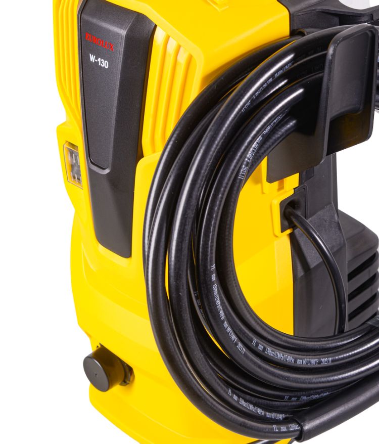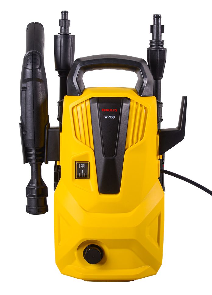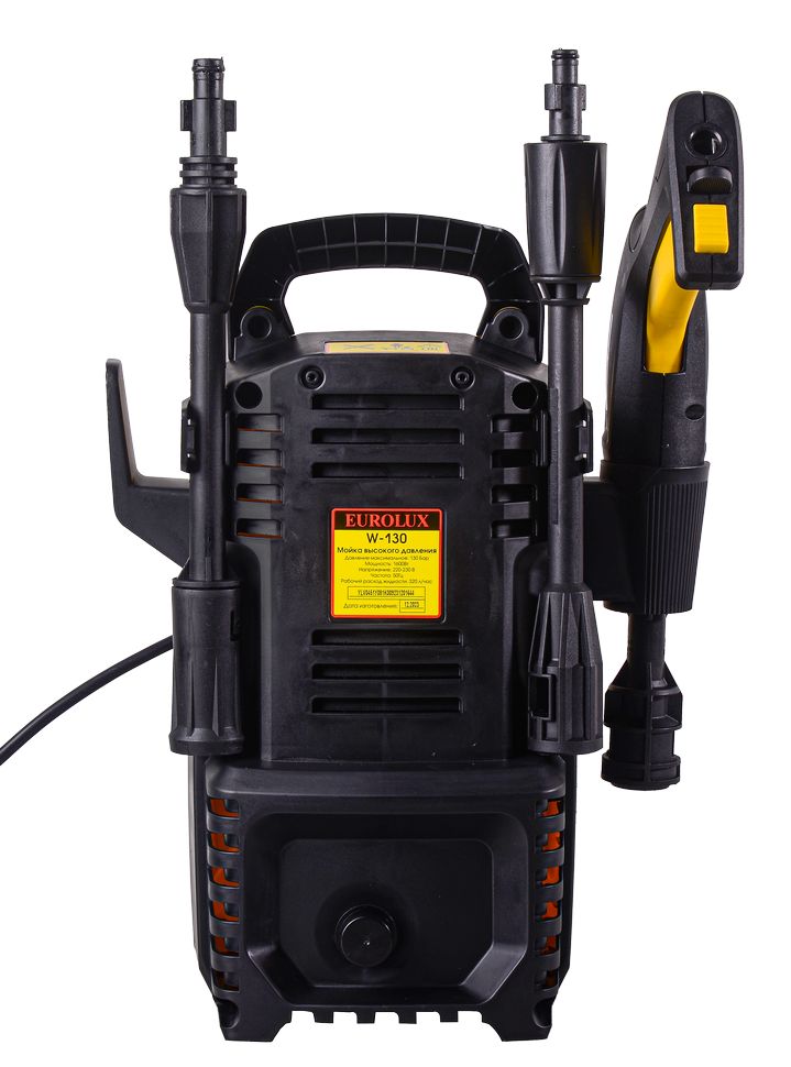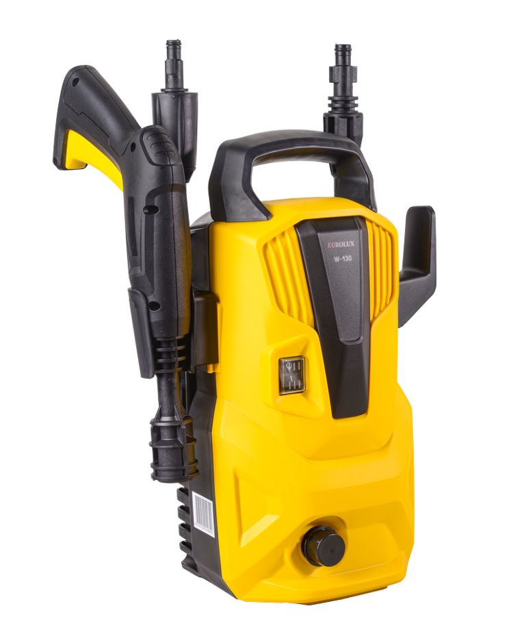 Мойка высокого давления Eurolux W-130 работает от однофазной электросети. Температура используемой воды не должна превышать 50° С. В комплект входит пистолет-распылитель разборного типа, 5-метровый шланг высокого давления и быстросъёмный коннектор для шланга подачи воды. Корпус выполнен из ударопрочного ABS-пластика, что обеспечивает малый вес мойки 5.26 кг. Алюминиевая помпа устойчива к образованию коррозии, отличается длительным сроком эксплуатации. Водозаборный фильтр препятствует попаданию механических примесей. Держатель для кабеля на корпусе защищает его от повреждений при хранении и транспортировке. Кнопка запуска расположена на рукоятке, что позволяет контролировать процесс работы.