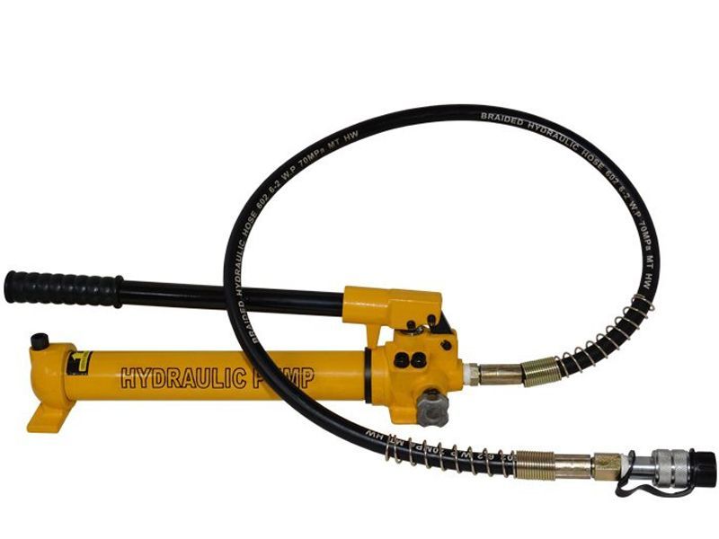 Насосы ручные гидравлические односторонние TOR HHB серия 700 с двухступенчатой конструкцией. Насос гидравлический применяется в качестве привода для различного гидравлического оборудования: домкратов, гидравлических опрессовщиков, гидроцилиндров одностороннего действия, прессов и других устройств. Соединение: быстроразъемное R2 3/8 с пылезащитным колпачком TOR HHB-700 - укомплектован рукавом высокого давления длиной 1,8 м TOR HHB-700A - укомплектован рукавом высокого давления длиной 1,8 м. Увеличенный резервуар для масла. Полезный объем масла -2700 см3. TOR HHB-700B - укомплектован рукавом высокого давления длиной 1,8 м, манометром, переходником для манометра. TOR HHB-700C - укомплектован рукавом высокого давления длиной 1,2 м. TOR HHB-700E - укомплектован рукавом высокого давления длиной 1,8 м. Увеличенный резервуар для масла. Полезный объем масла -2000 см3.Преимущества насоса серии HHB: - Прочный и компактный. - Двухступенчатая гидравлическая система для быстрой и легкой работы. - Легкий ход рычага для минимизации усталости оператора. - Удобный вентиль сброса давления увеличенного размера. - Внутренний клапан сброса давления для защиты от перегрузки.