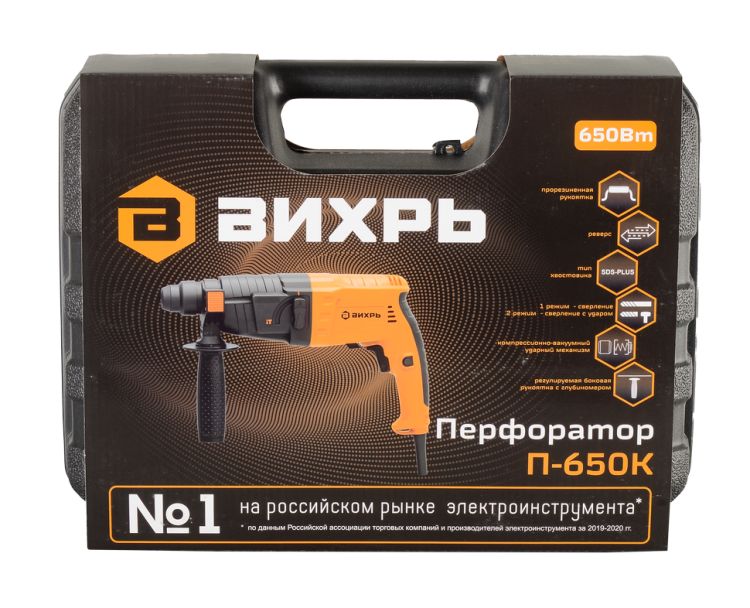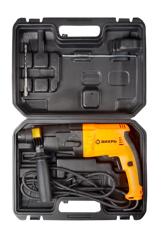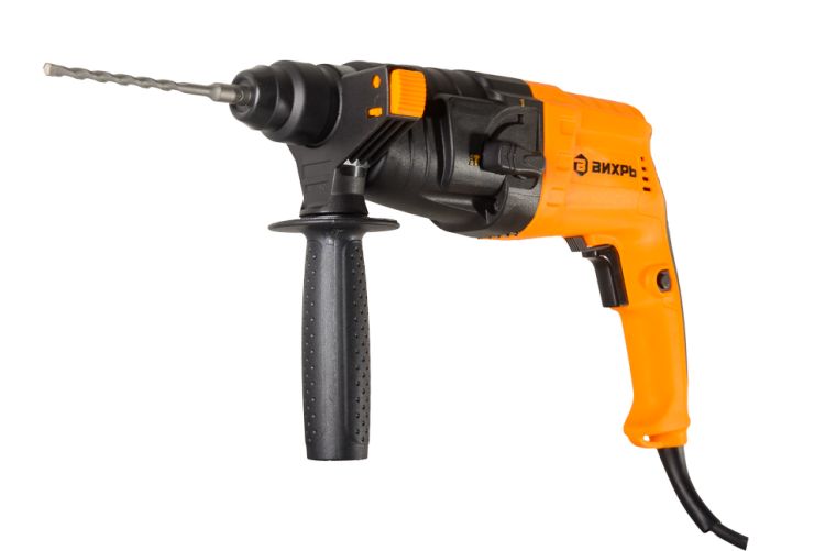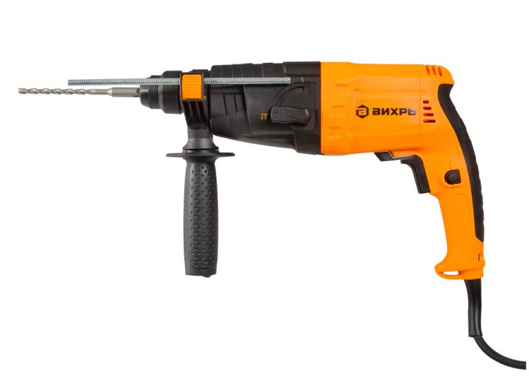 Перфоратор ВИХРЬ – электроинструмент, аналогичный дрели, но с наличием не механического, а пневматического ударного механизма. Именно поэтому перфоратор используют для сложных работ по твёрдым материалам - бетону, кирпичу, металлам.