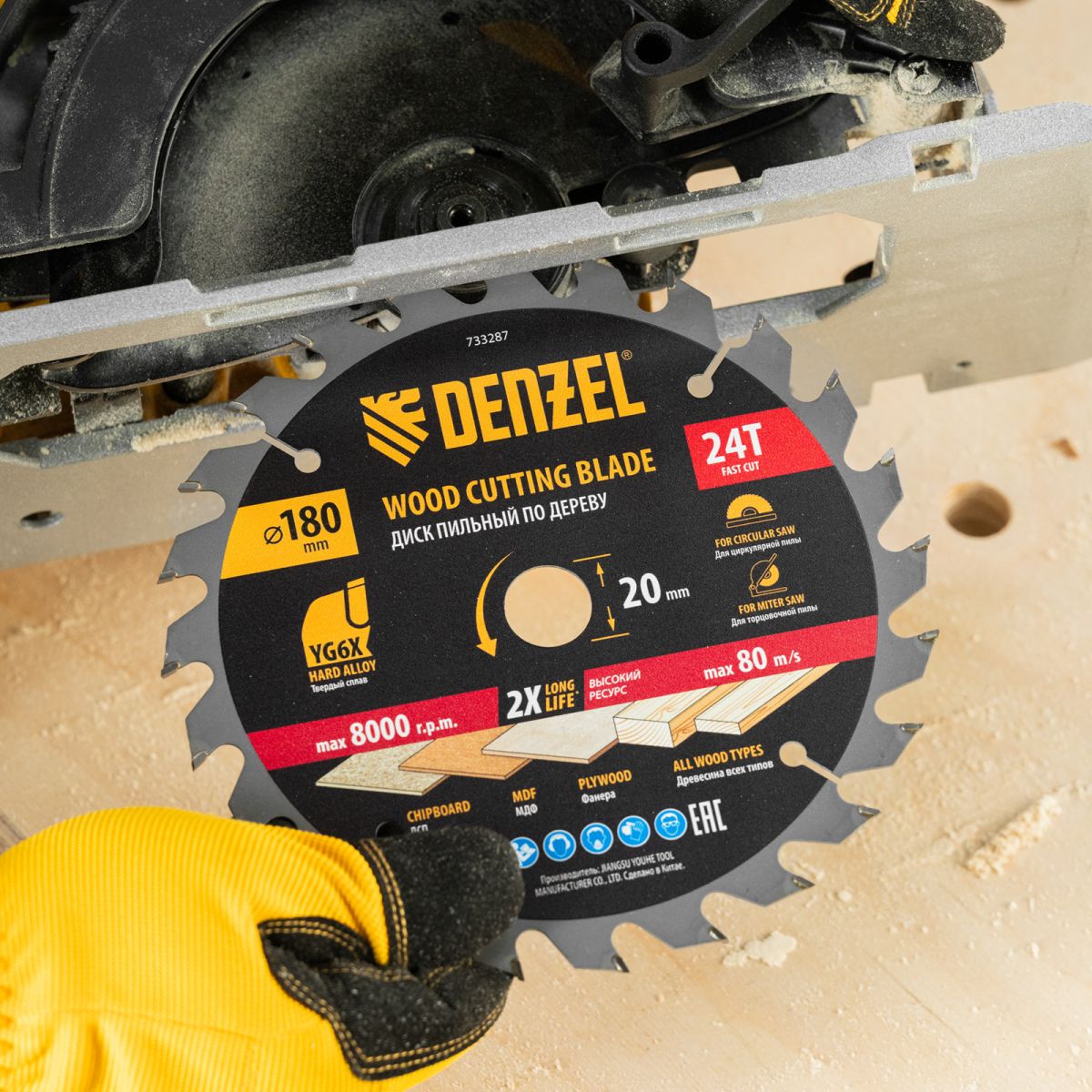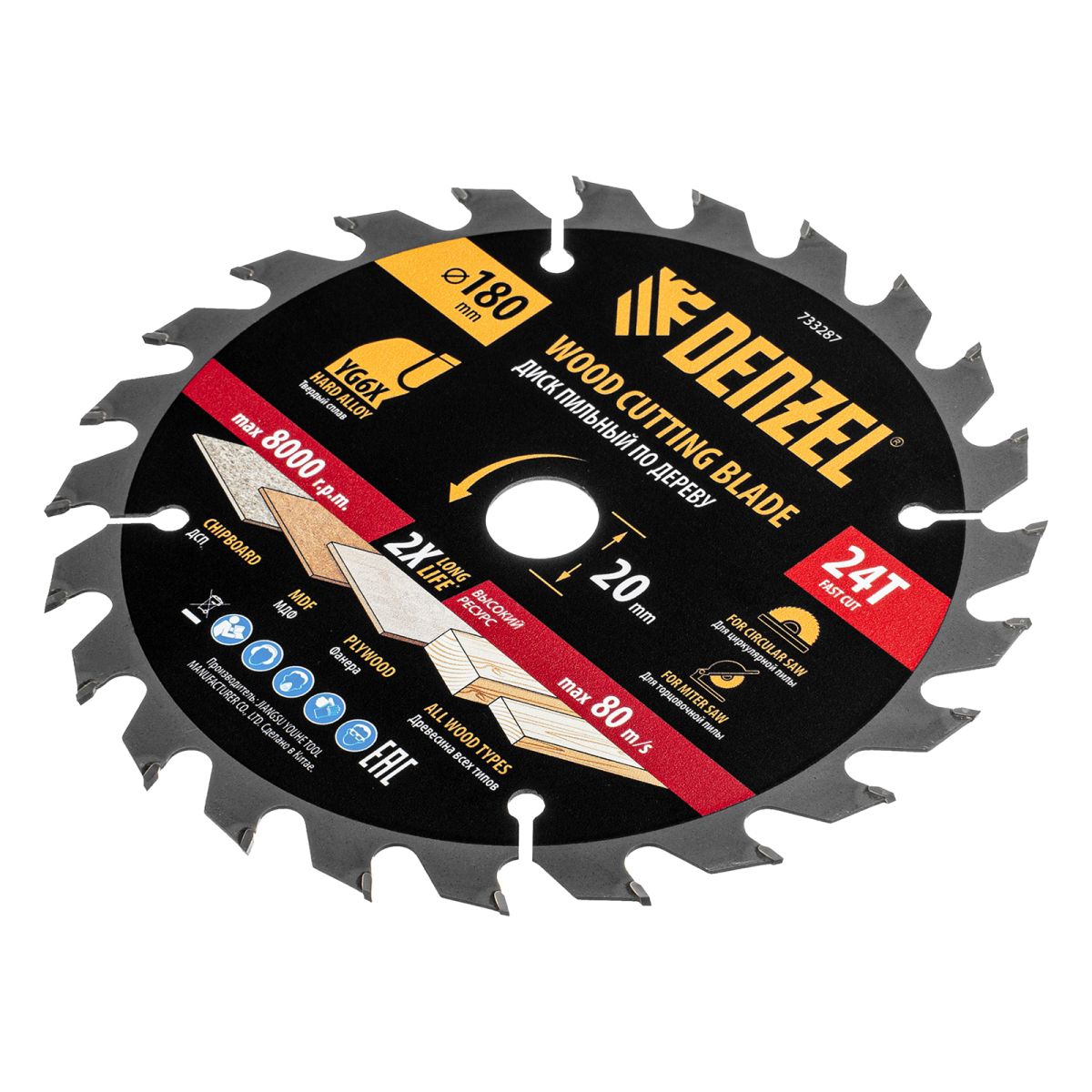 Пильный диск по дереву ф180х 20 мм, 24 зубьев Denzel
