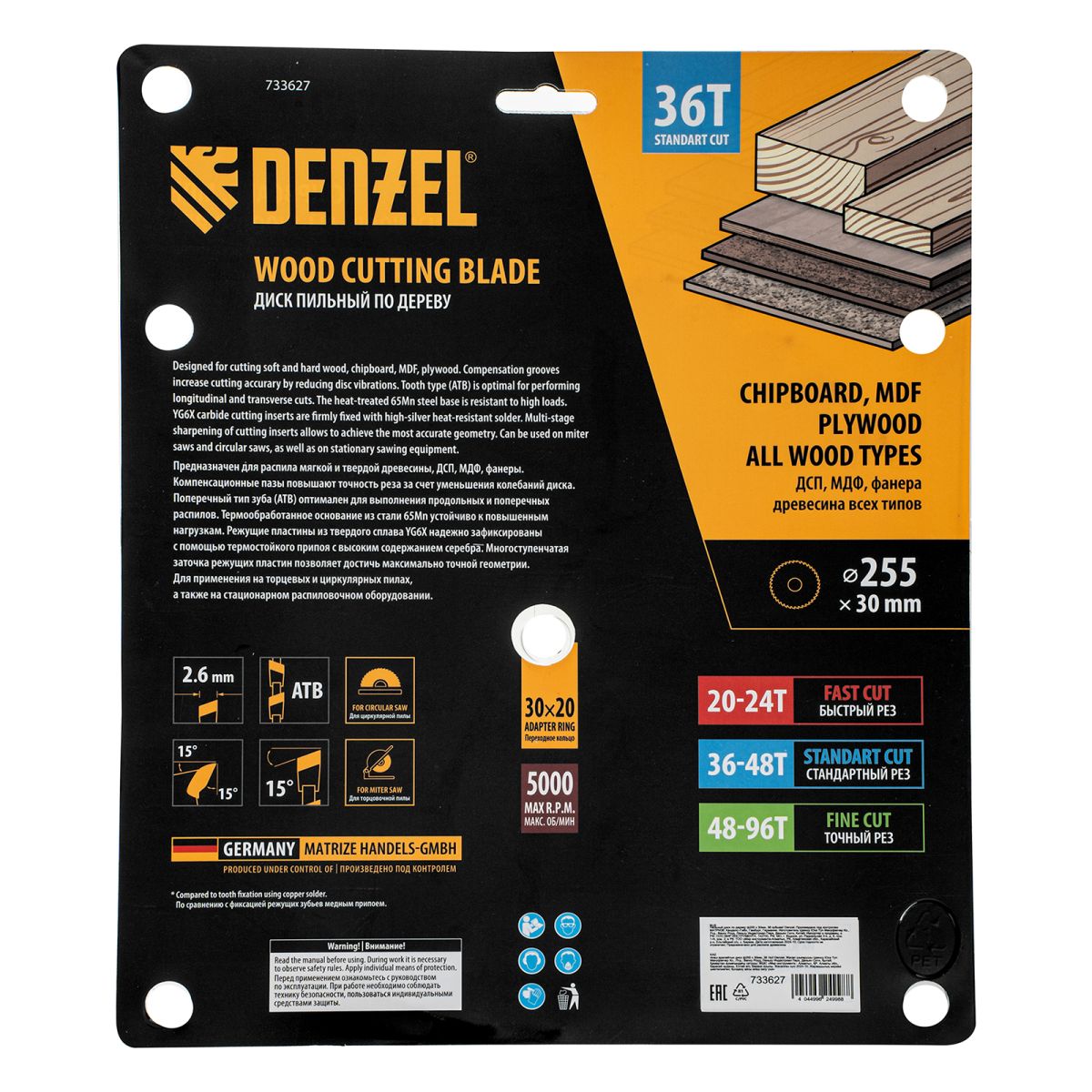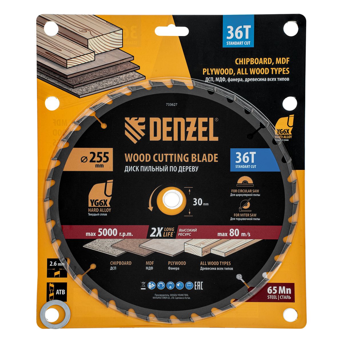Пильный диск по дереву ф255 х 30мм, 36 зубьев Denzel