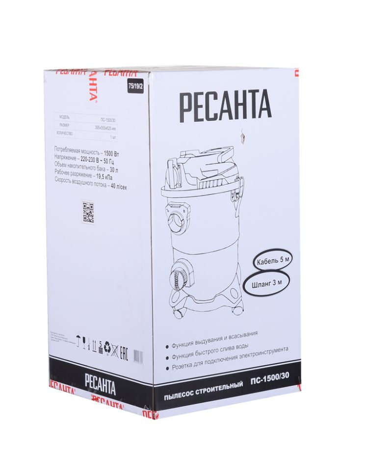 Строительный пылесос ПС-1500/30 Ресанта предназначен для сухой и влажной уборки помещений, а также для совместного использования с электроинструментом при принудительном удалении продуктов строгания, пиления. Может убирать крупные частицы мусора, а также воду.