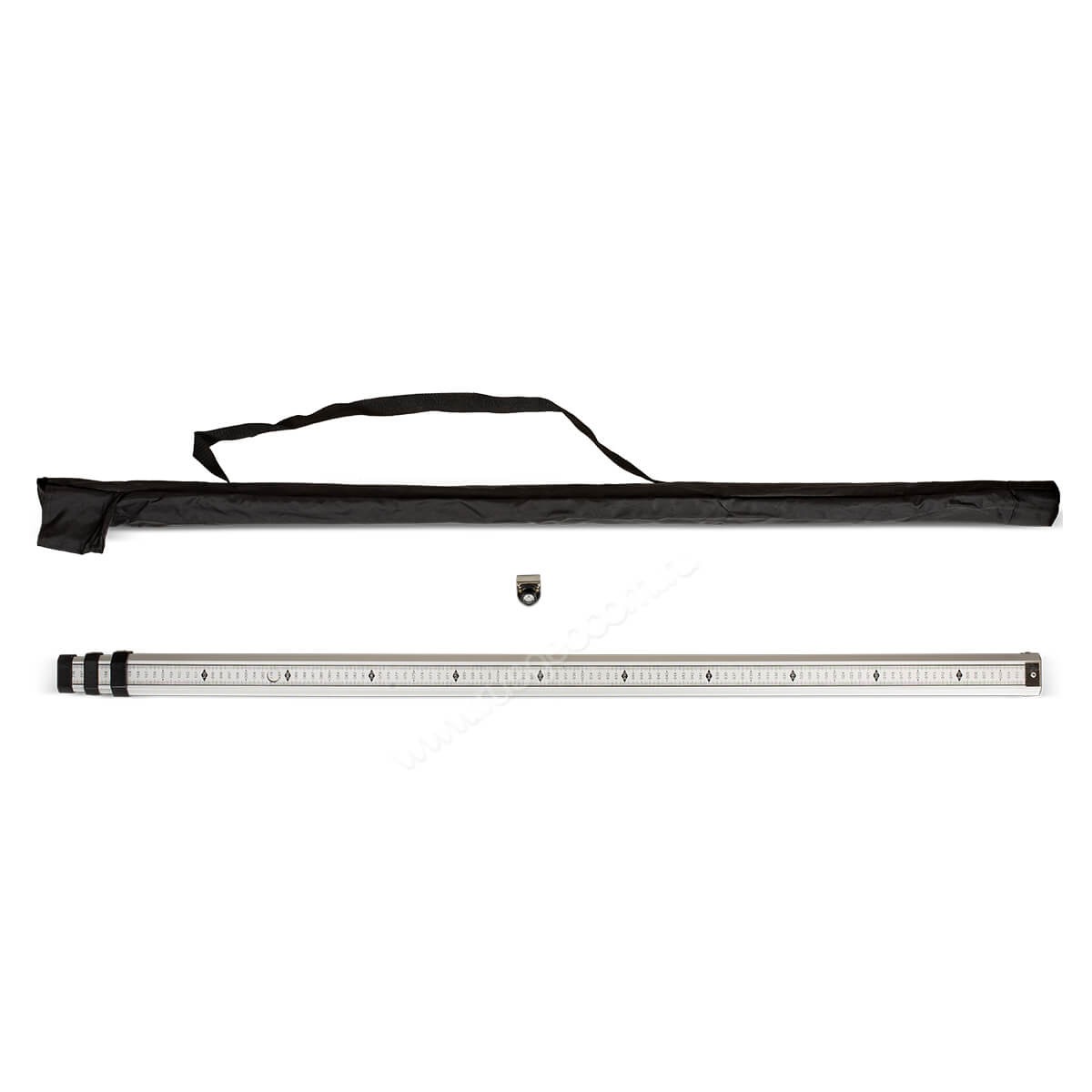 Вес менее 1 кг в совокупности с длиной в сложенном виде чуть более 1 м позволяет удобно транспортировать рейку, для чего в комплекте предусмотрен удобный чехол с регулируемым ремнем.