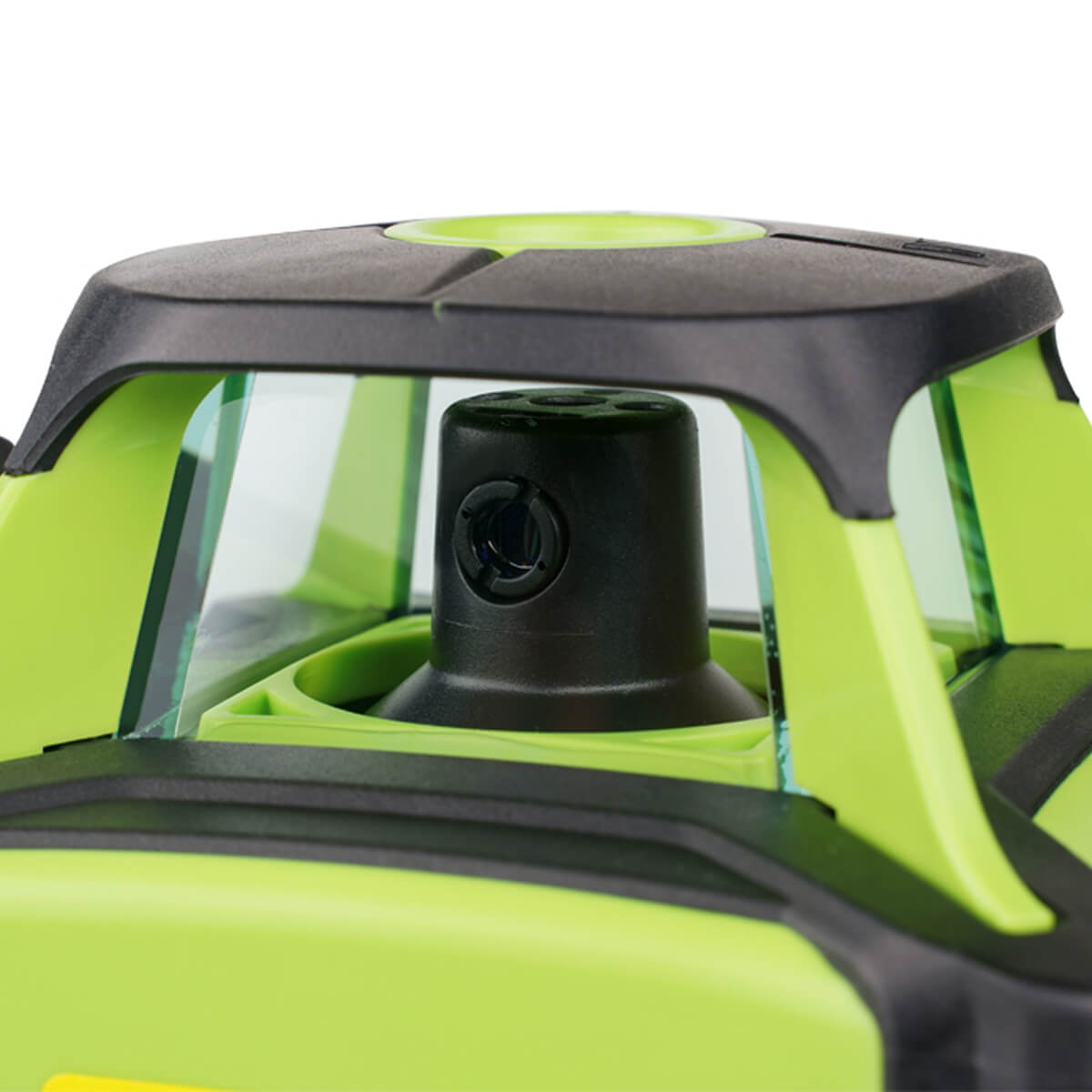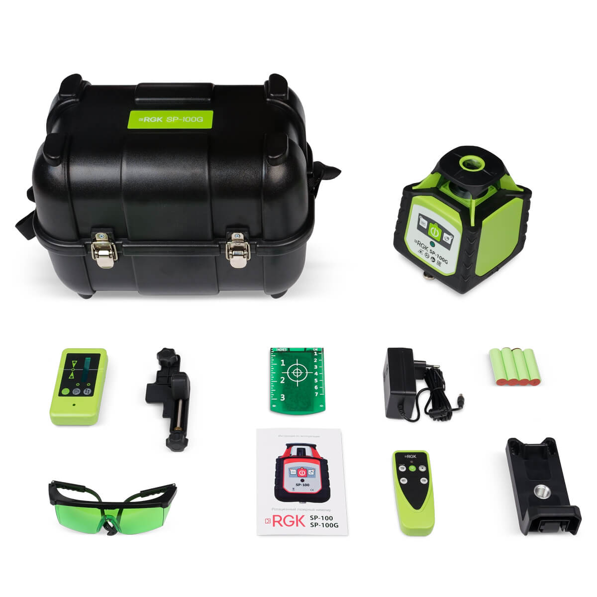 Ротационный нивелир RGK SP-100G с лазерным лучом зеленого цвета одинаково хорошо подходит как для разметки в большом помещении, так и для работы на улице. Яркую линию отлично видно на расстоянии до 30 метров, но полностью потенциал прибора раскрывается с приемником излучения, который включен в комплект. При таком формате работы диапазон расширяется до 100 метров, что позволяет целиком охватить большую зону.