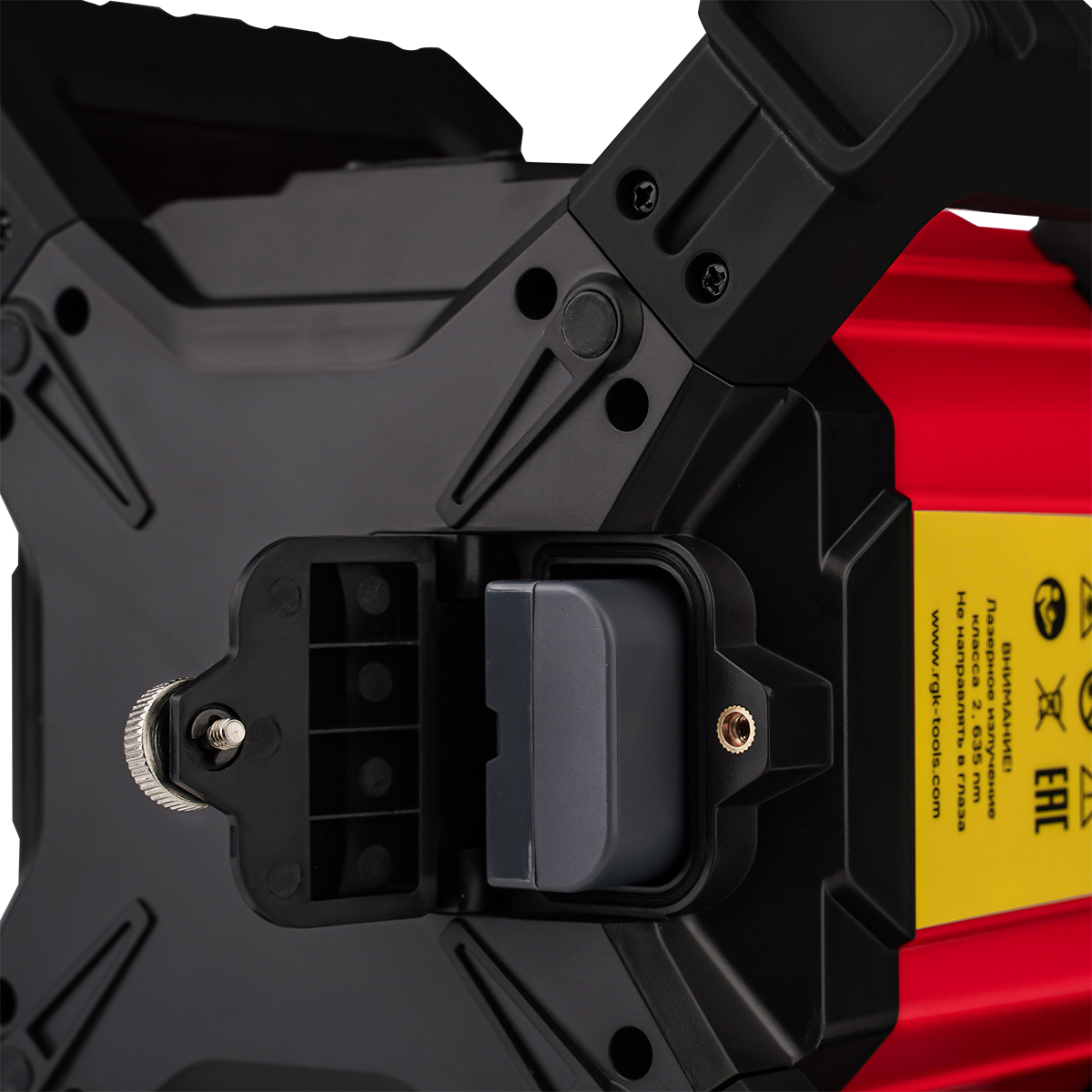 - Регулировка скорости вращения лазера. Помогает быстрее ловить лазер приемником на большом расстоянии или экономить заряд при работе в помещении.