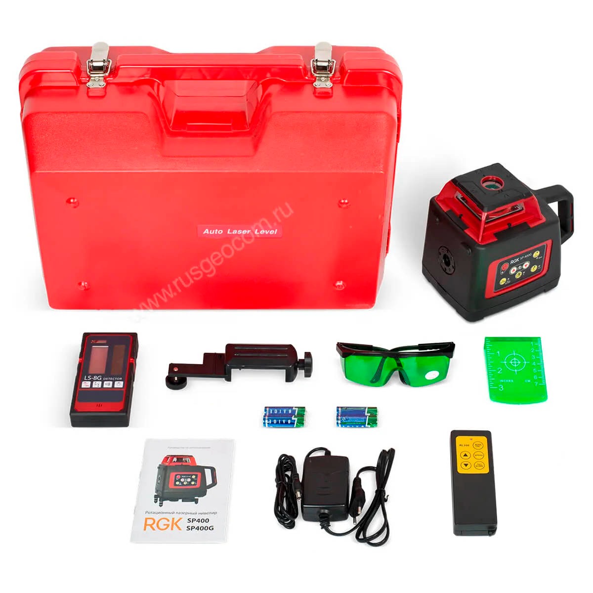 Ротационный нивелир RGK SP-400G оснащён зелёным лазером. Зелёный луч ярче и лучше заметен при ярком свете, а также позволяет использовать два уровня одновременно, отличая плоскости по цвету. RGK SP-400G — один из самых доступных зелёных ротационных нивелиров в своём классе.