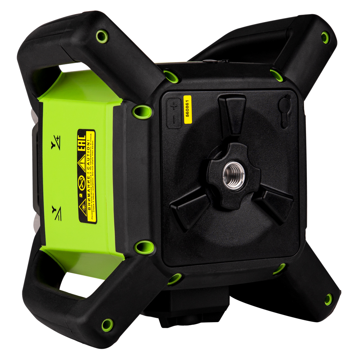 Человеческий глаз воспринимает зеленый свет в 3–4 раза ярче, чем красный, при одинаковой мощности. Это значит, что вы можете не подключать приемник при внутренних работах — луч виден на стенах, потолке, полу.