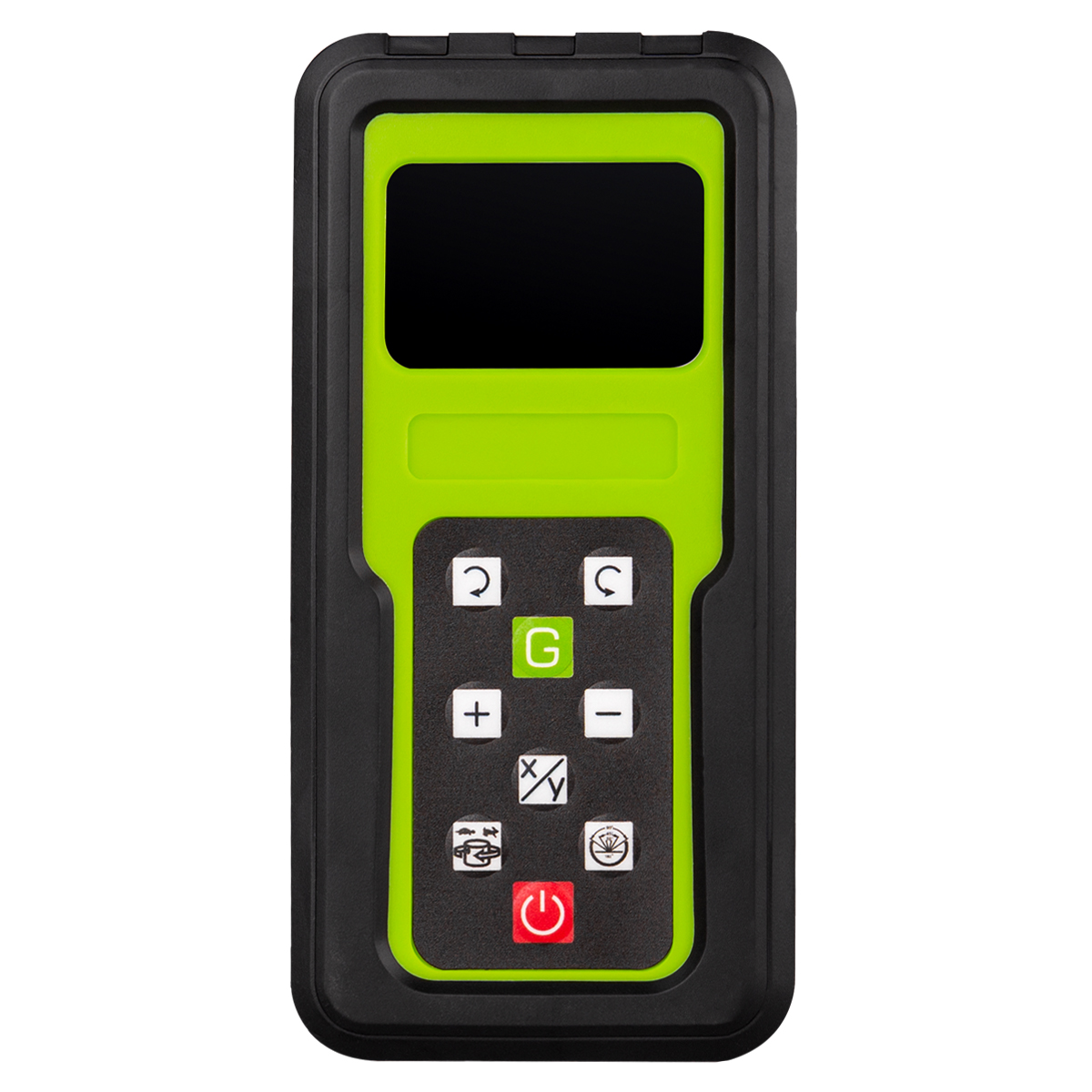- Пульт ДУ с дисплеем показывает текущий режим, угол наклона и статус уровня — вы управляете всем, не подходя к прибору.