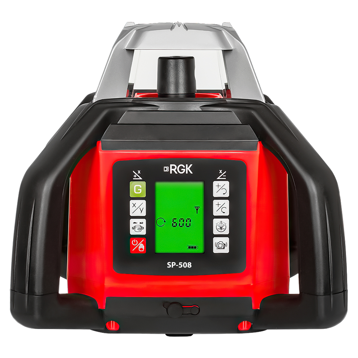 Ротационный нивелир RGK SP-508 представляет собой усовершенствованную версию популярной модели SP-500, которая сохраняет все ключевые преимущества своего предшественника, но при этом предлагает одну уникальную функцию — автоматическую ориентацию лазерного луча на приёмник. Эта инновация значительно упрощает и ускоряет выполнение геодезических и строительных задач, требующих точного совмещения лазерной плоскости с заданной отметкой.