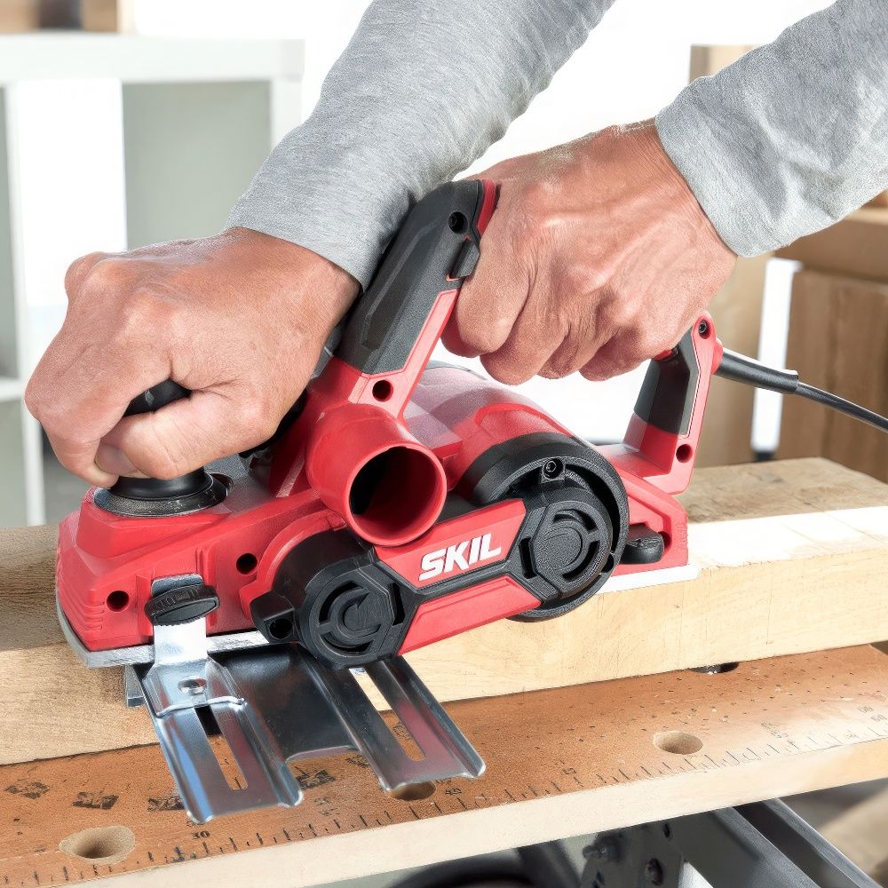 SKIL PL2012 — это электрический рубанок мощностью 710 Вт, предназначенный для точного строгания, снятия фасок и выборки четверти на различных типах древесины. Благодаря высококачественным двусторонним ножам из твердосплавного материала (TCT), инструмент обеспечивает гладкую обработку и длительный срок службы: когда одна сторона изнашивается, нож можно просто перевернуть.