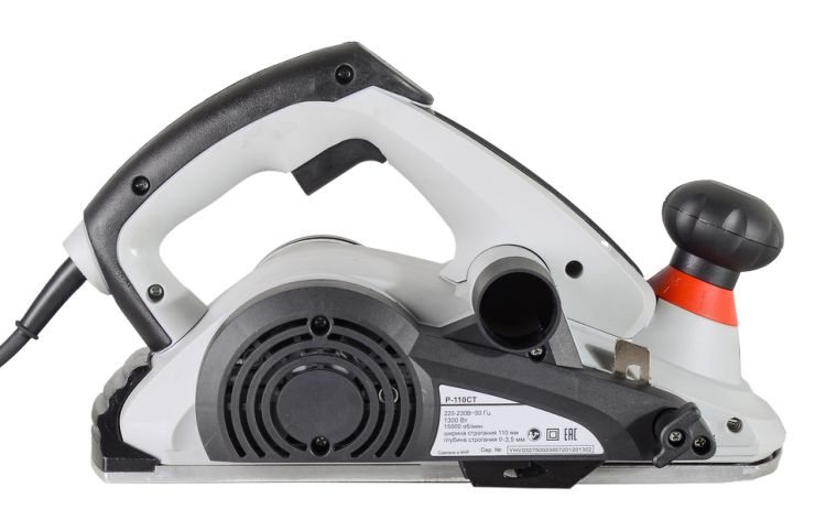 Для поддержания рабочего места в чистоте, инструмент оснащен патрубком для отвода пыли. С помощью широкой рукоятки можно не только крепко удерживать инструмент во время работы, но и регулировать глубину строгания от 0 до 3 мм. Для удобства работы продолжительное время на рукоятке предусмотрен фиксатор пусковой клавиши. Воздушное охлаждение исключает возможность перегрева в течение работы.