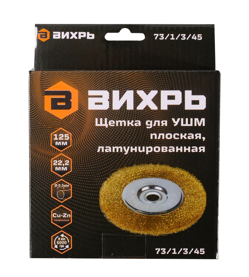 Щётка для УШМ Вихрь плоская, латунированная, 125 мм